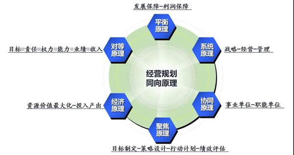 企業(yè)的有效運(yùn)作應(yīng)當(dāng)遵循“戰(zhàn)略一經(jīng)營(yíng)一管理”三位一體運(yùn)行的規(guī)律。戰(zhàn)略著眼于長(zhǎng)遠(yuǎn)規(guī)劃,指明企業(yè)前進(jìn)的方向;管理側(cè)重日常運(yùn)營(yíng),確保企業(yè)運(yùn)作的效率;而年度經(jīng)營(yíng)計(jì)劃則是對(duì)上承接方向,對(duì)下保障效率,達(dá)成戰(zhàn)略和管理的結(jié)果。綜合分析年度經(jīng)營(yíng)計(jì)劃在企業(yè)管理中的地位和作用,我們認(rèn)為,科學(xué)的年度經(jīng)營(yíng)計(jì)劃應(yīng)當(dāng)符合六大基本原則,方能將經(jīng)營(yíng)的各方面要素統(tǒng)合籌劃,實(shí)現(xiàn)同向發(fā)展。
